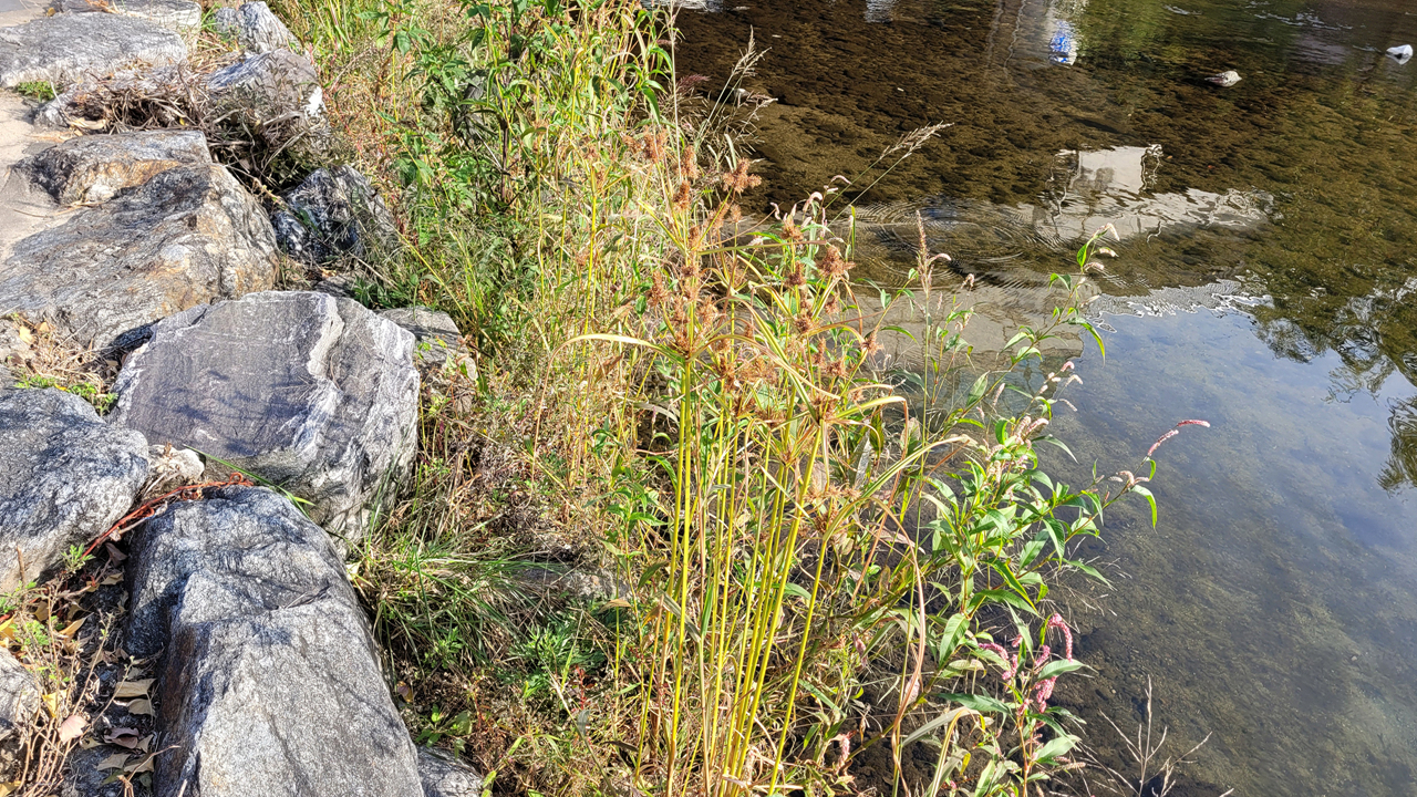 사초과의 한해살이풀로 아시아의 열대 및 아열대 지방이 원산지이다. 논이나 습지에서 재배하며, 야생하기도 한다. 높이 90-150cm. 줄기의 껍질이 매우 질겨 돗자리, 방석 등을 만들고, 줄기 속은 모자·노끈·종이의 원료로 이용한다. 특히, 강화도의 화문석은 민속공예품으로 유명하다.완초, 현완, 석룡초라고도 부른다. (학명 Cyperus exaltatus var. iwasakii, 영문 Great flatsedge, 일어 ガンエンガヤッリ)