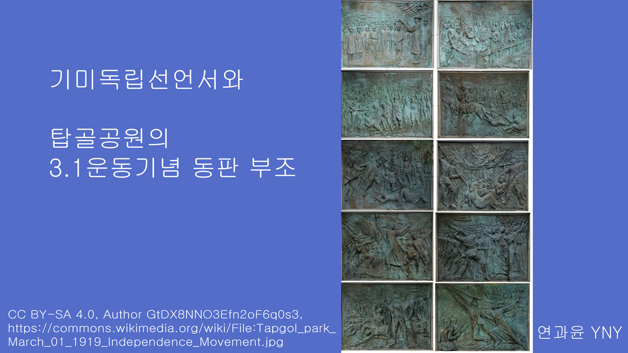 기미독립선언서와 탑골공원의 3.1운동기념 동판 부조